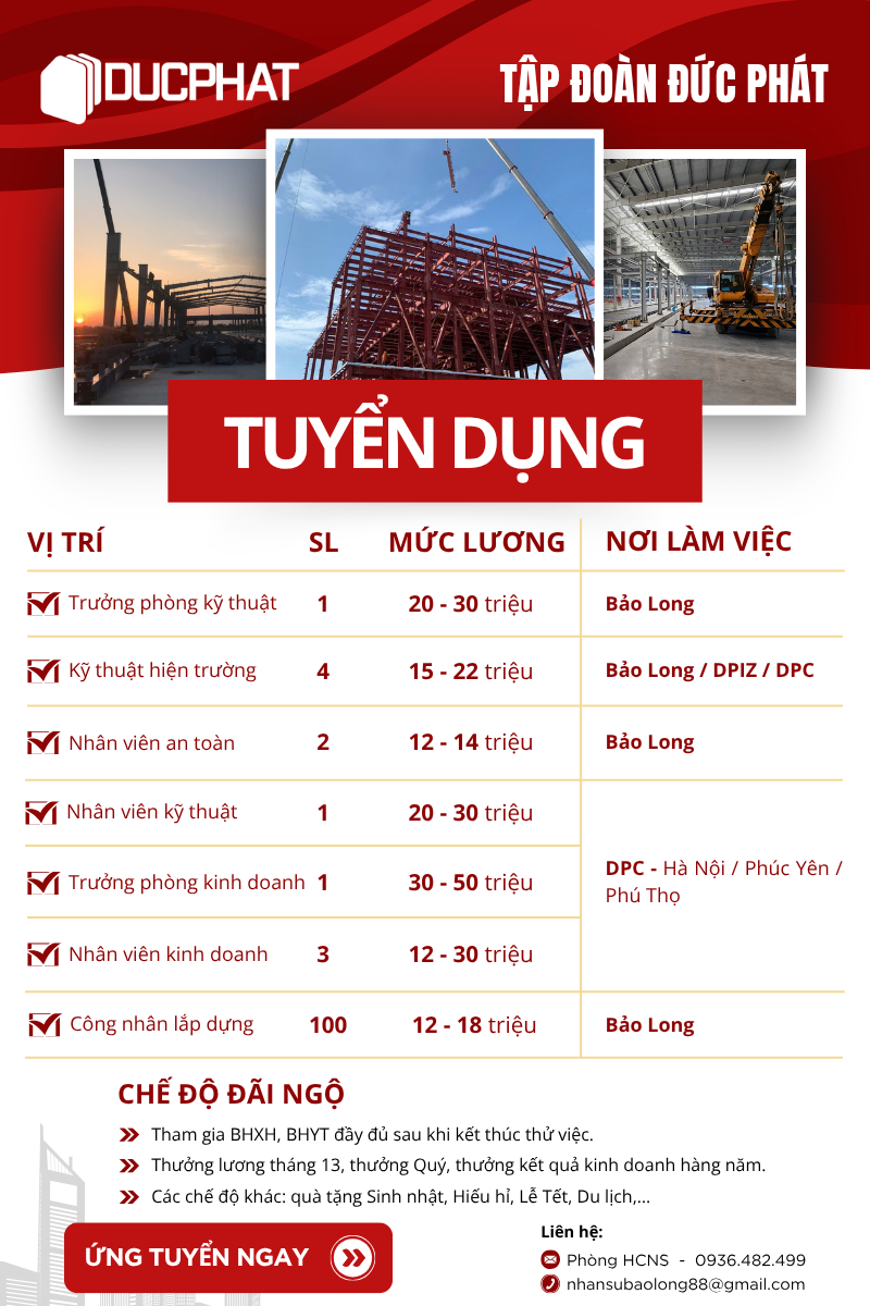 TUYỂN DỤNG NHÂN SỰ – TẬP ĐOÀN ĐỨC PHÁT